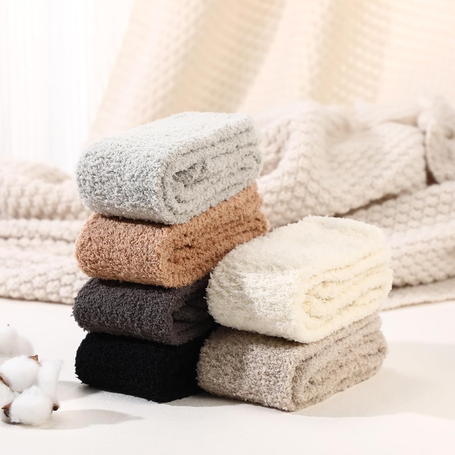 6 Pairs Knee High Cozy Fuzzy Socks for Women Soft Warm Long Pl