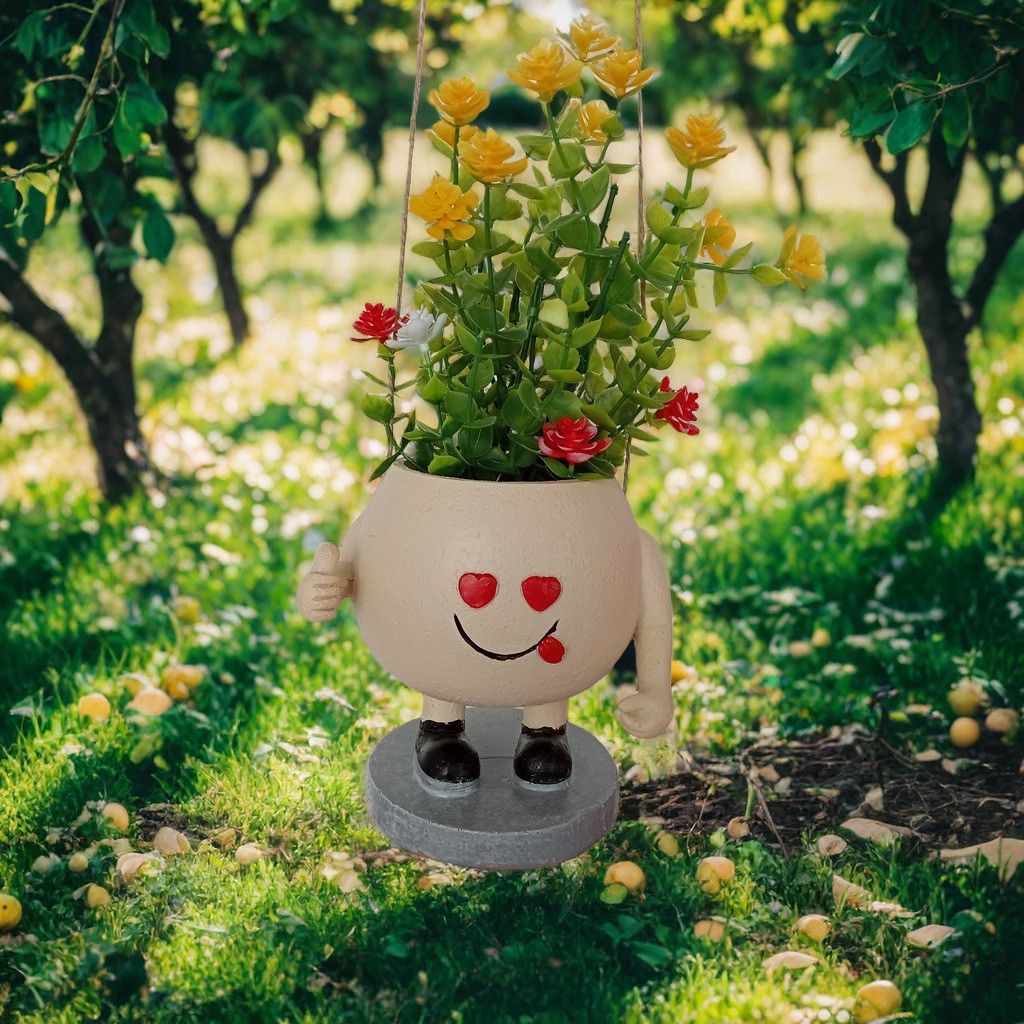 A201 Cute Cartoon Smiling Man Succulent Planter, Garden Yard Landscape Decor Pot