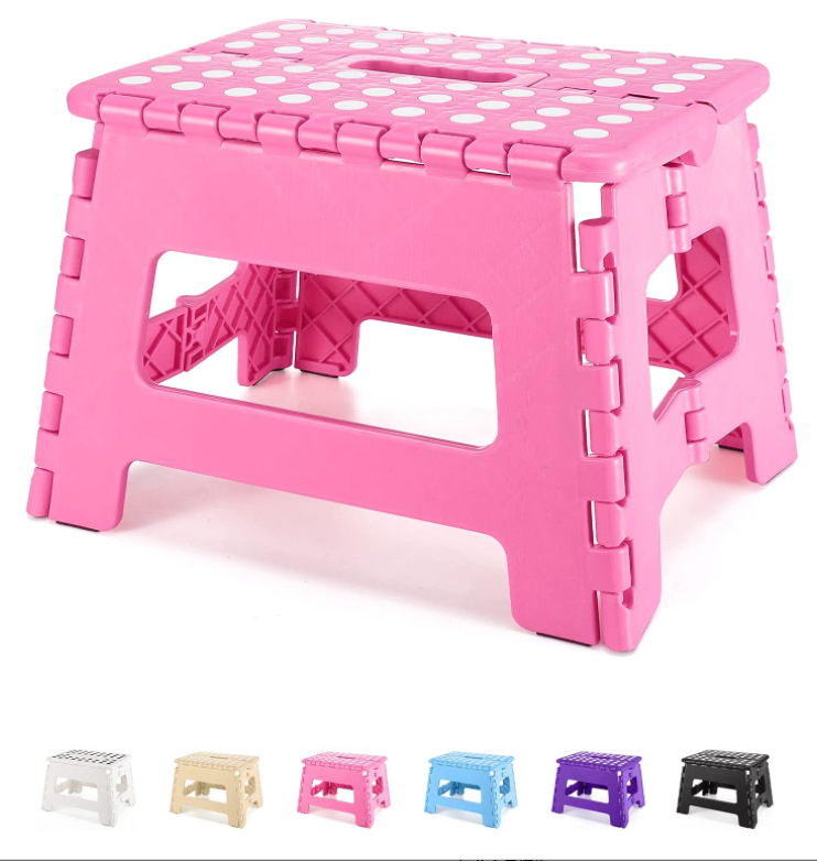 29*22*22cm Folding Step Plastic Foldable Step Stools for Kids and Adults, Folding Stool Suitable for Kitchen, Stepping Stool with Handle Light Purple Small Step Stool 1PC