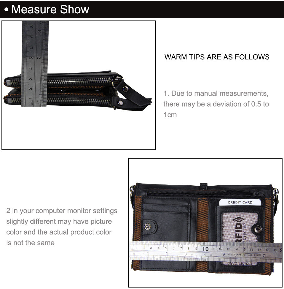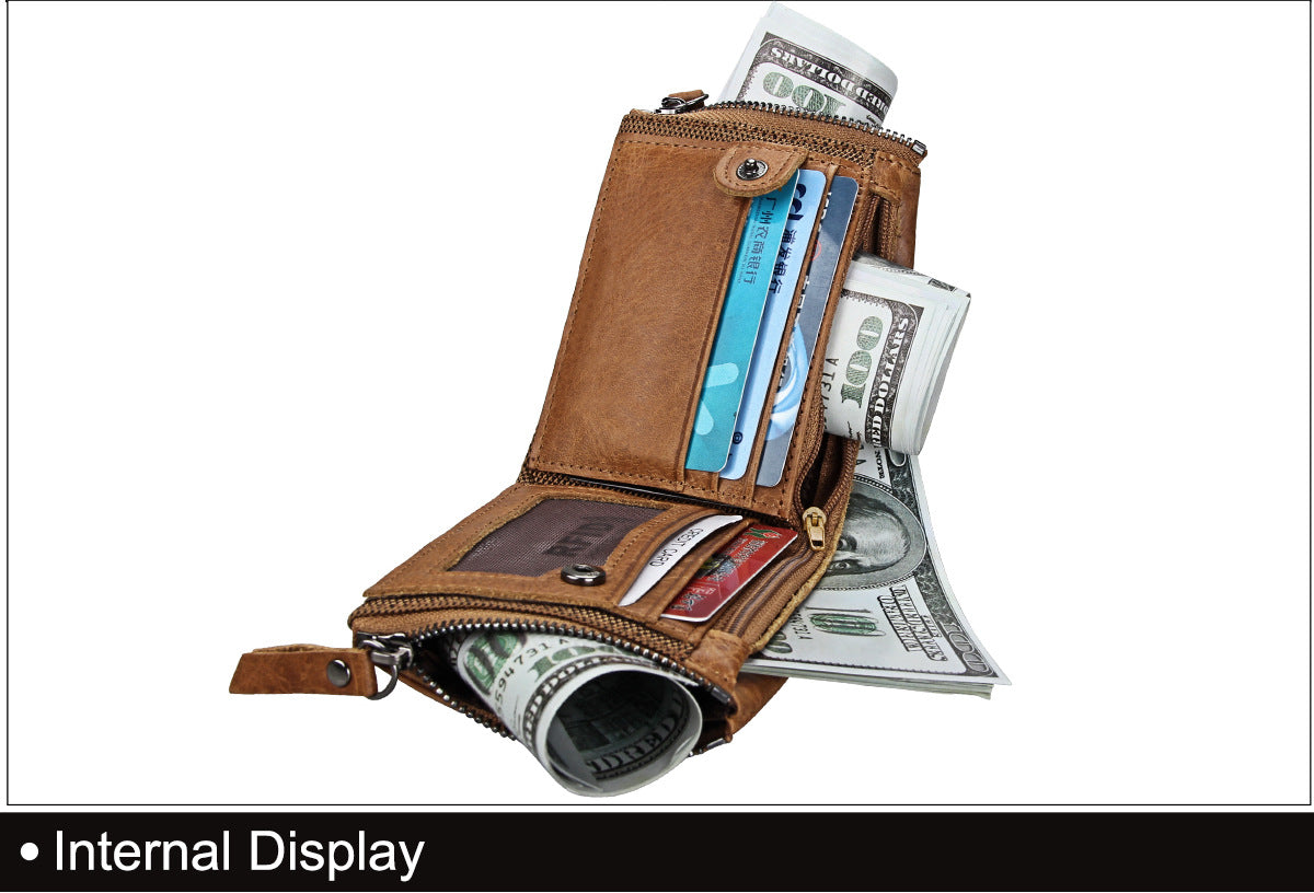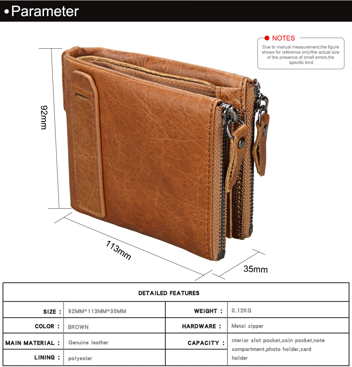 A296 Crazy Horse Leather Men's Wallet RFID-Protected Short-Style Men's Billfold with Dual Zippers and Coin Pocket
