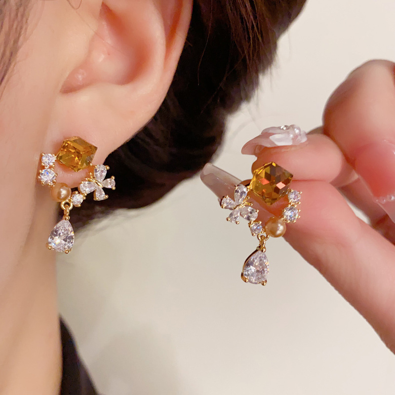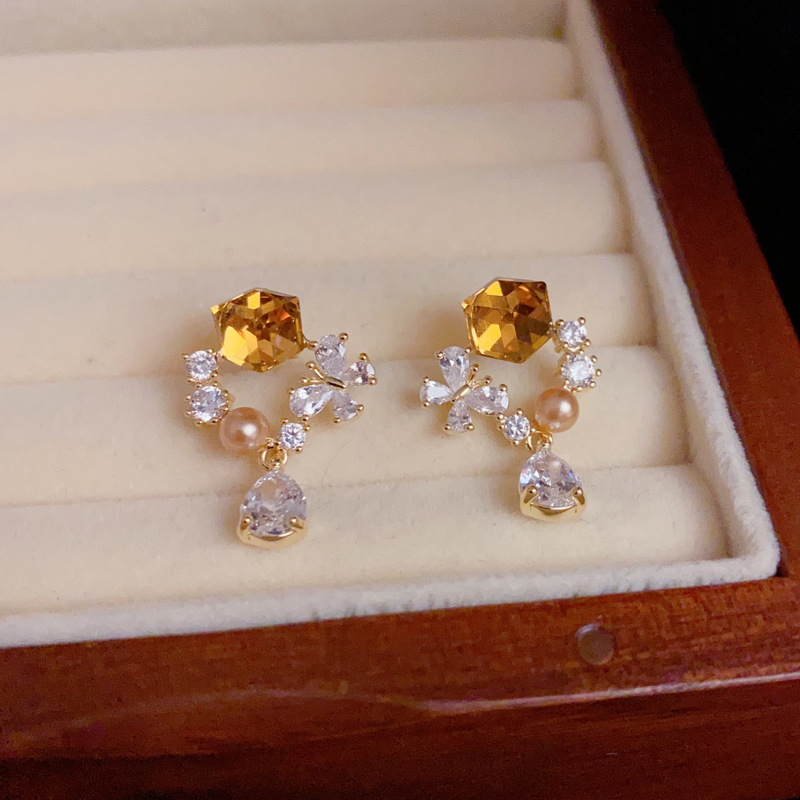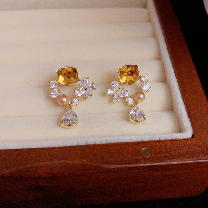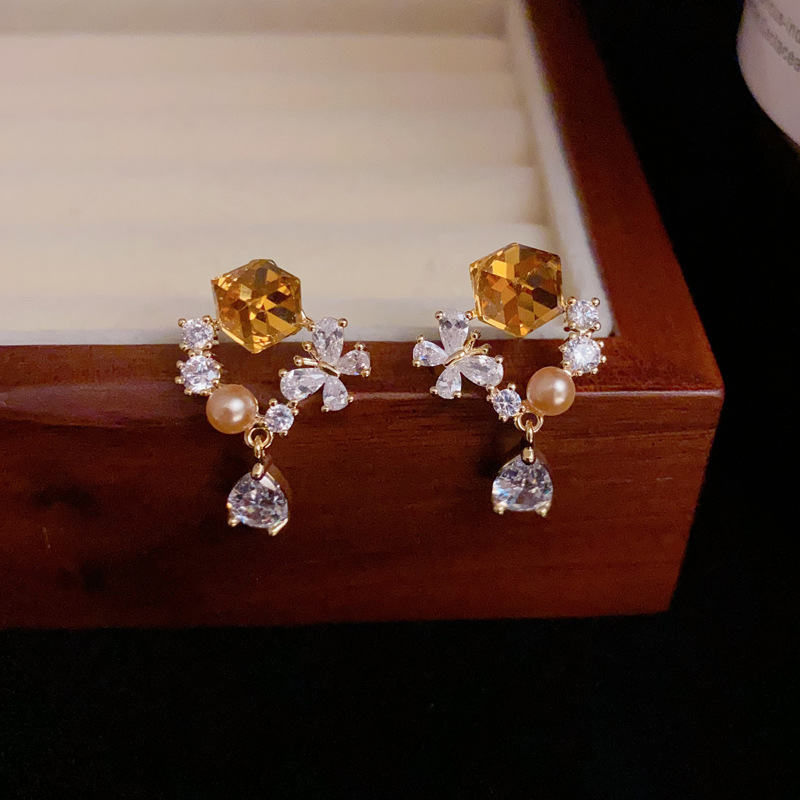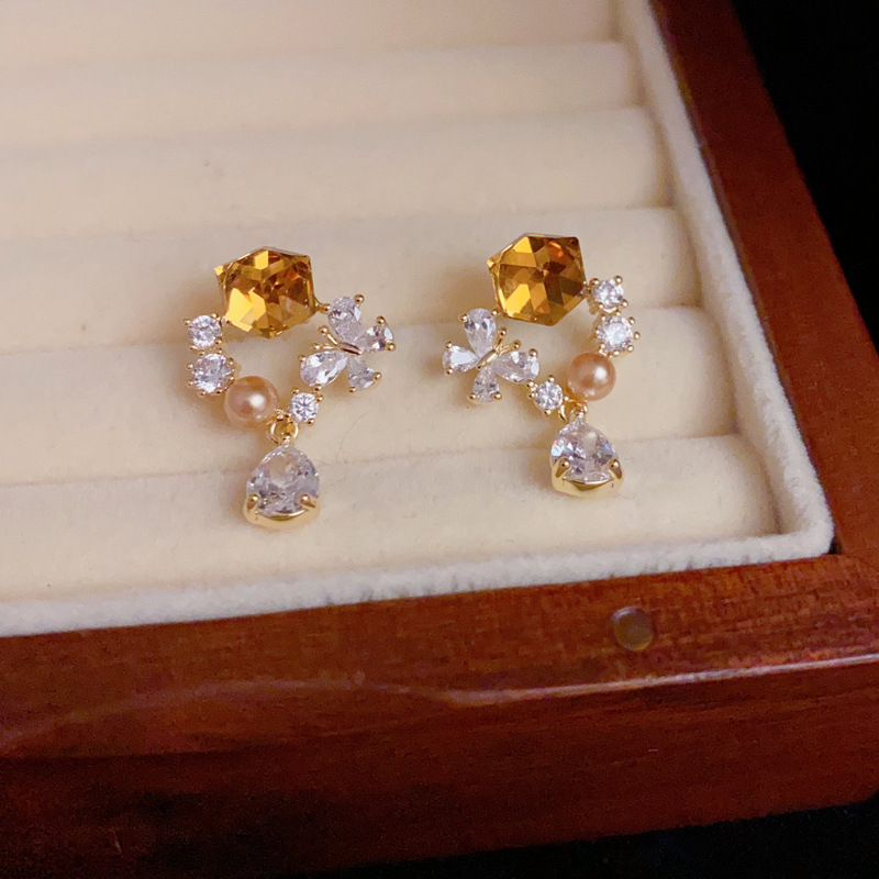 A156 Elegant Fashion Unique Design Diamond Inlaid Butterfly Water Drop Earrings, Exquisite Versatile High Grade Earrings for Women