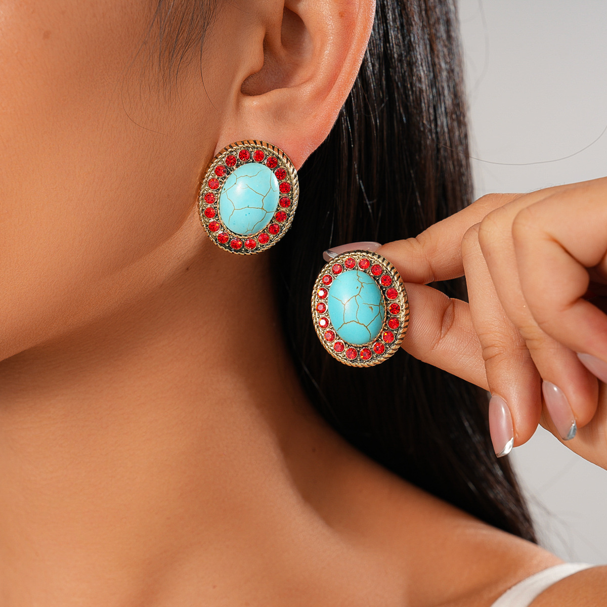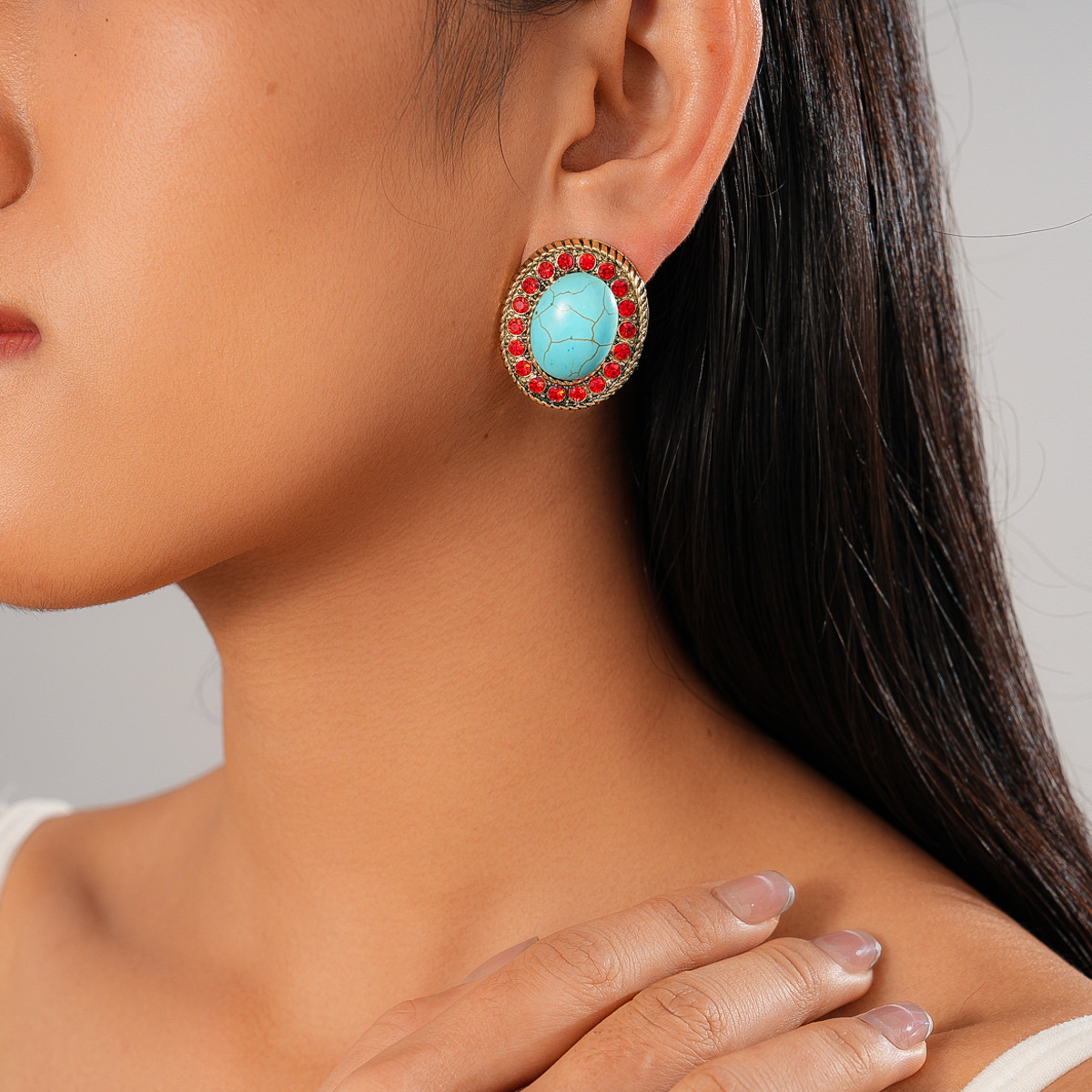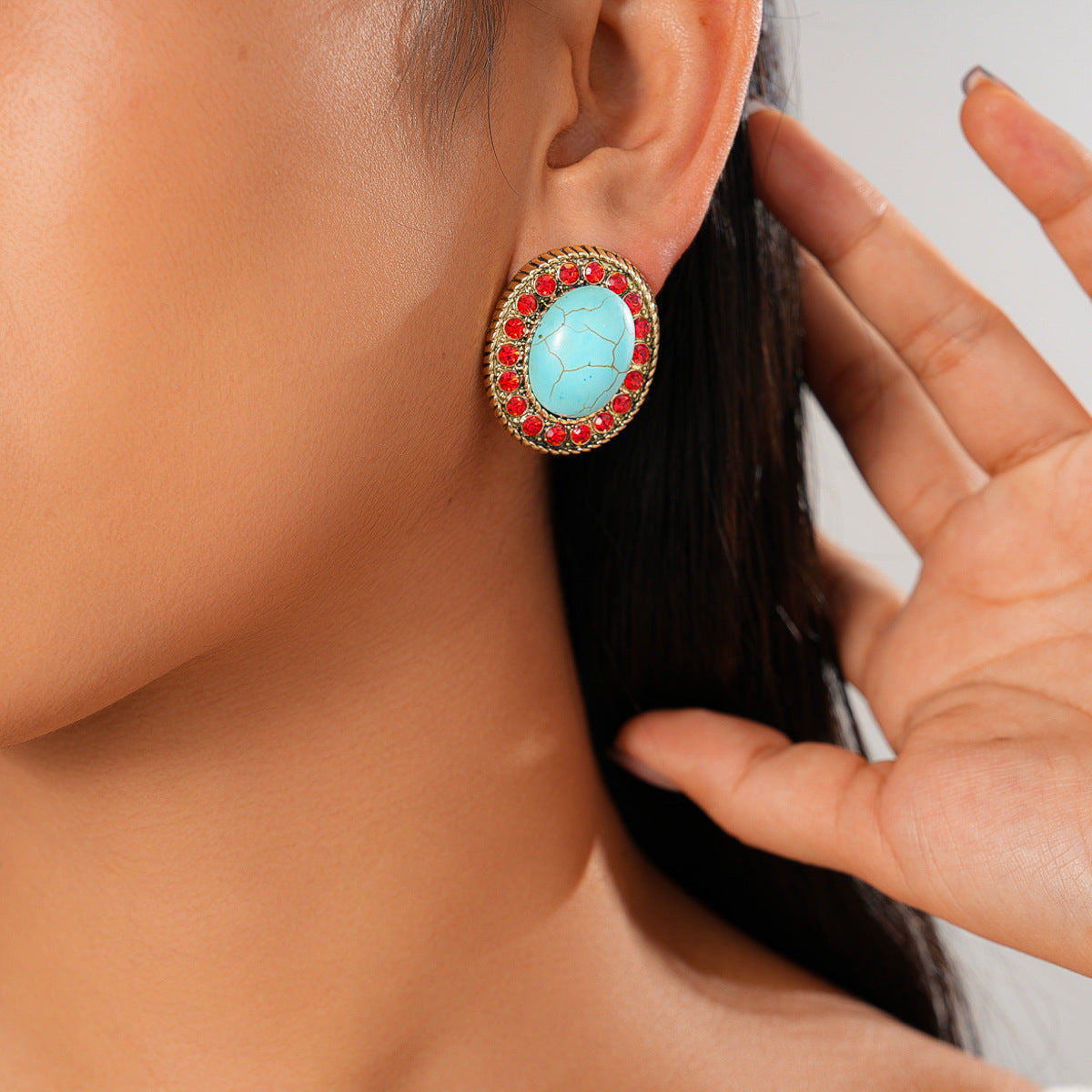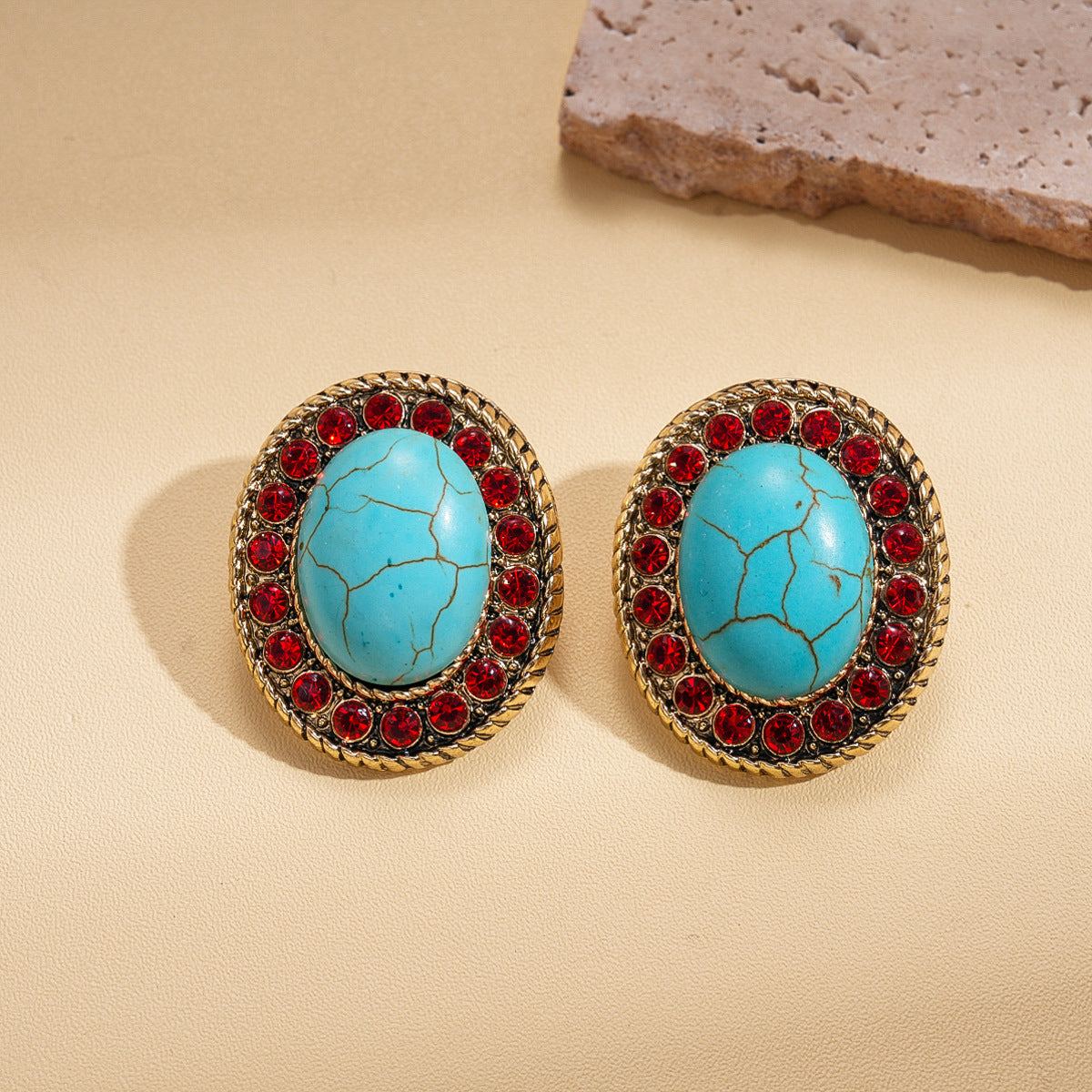 A193 Luxury High-Grade Ethnic Stone Rhinestone Necklace, Geometric Splicing Boho Vintage Sweater Chain
