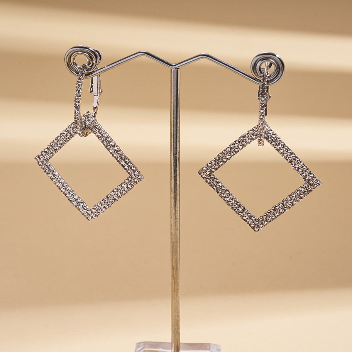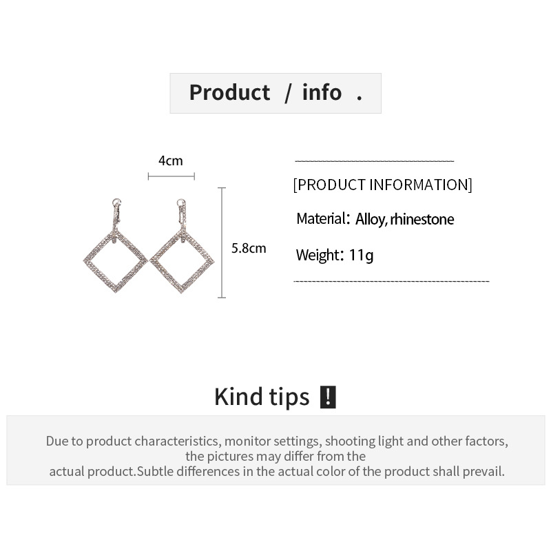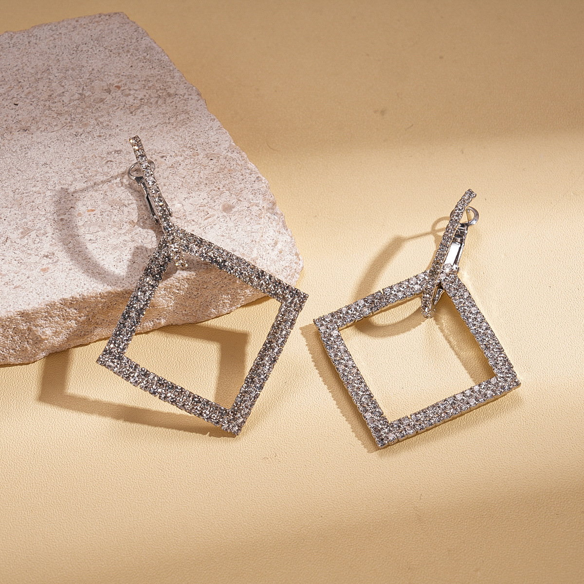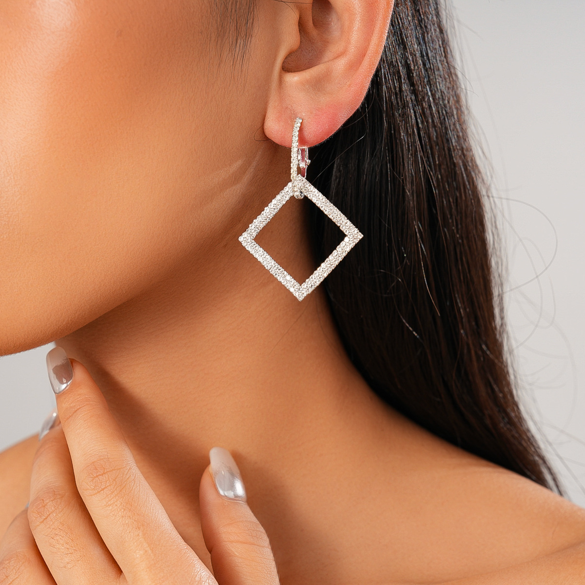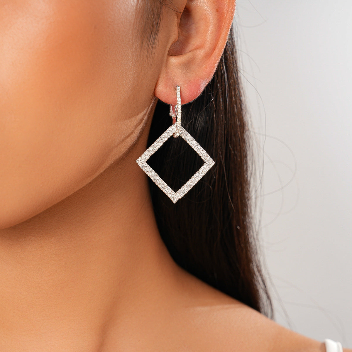 A191 Luxury Rhinestone Square Geometric Silver Needle Ear Cuffs, Minimalist High-End Elegant Earrings for Women
