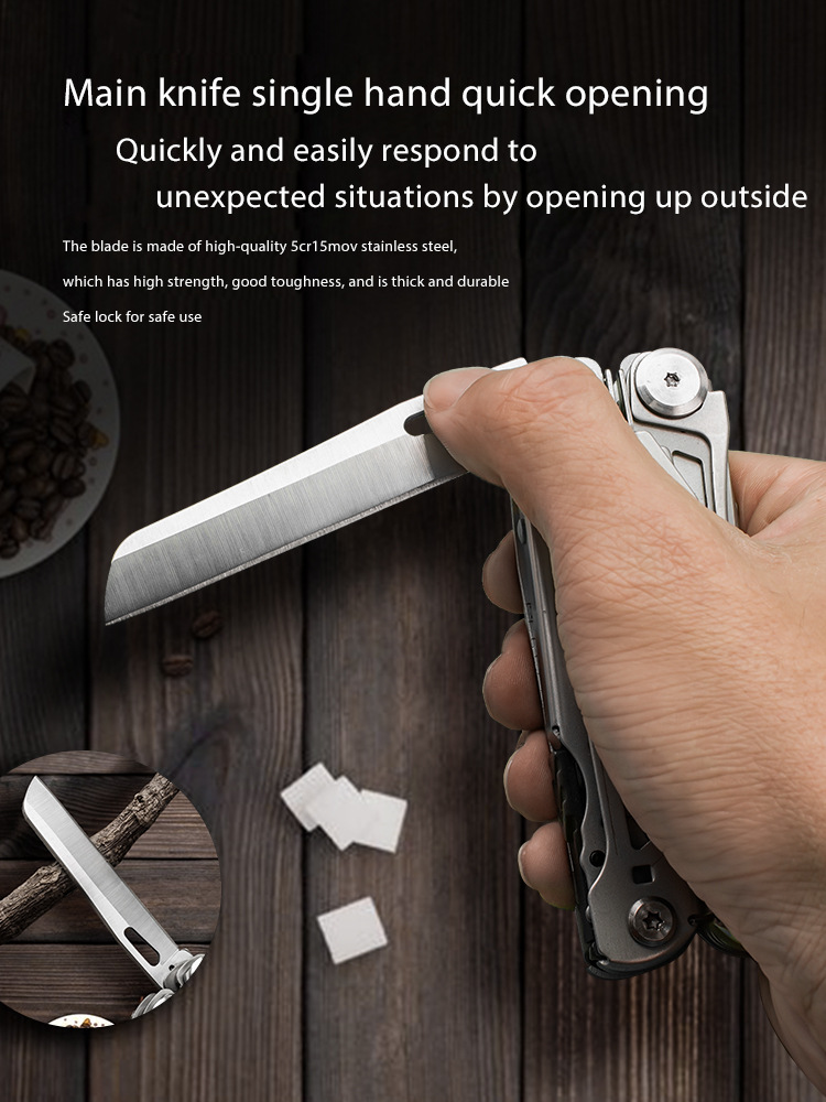Integrated Utility Tools: Common additional functions include screwdrivers (Phillips/flathead, multiple sizes), small saw blade (for wood), ruler, can opener, etc.;