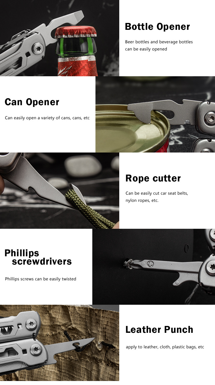 Cutting Function: Built-in cutting edges (e.g., wire cutters, wire strippers) can cut metal wires, ropes, fishing lines, etc., with diameters ranging from 3-8mm.
