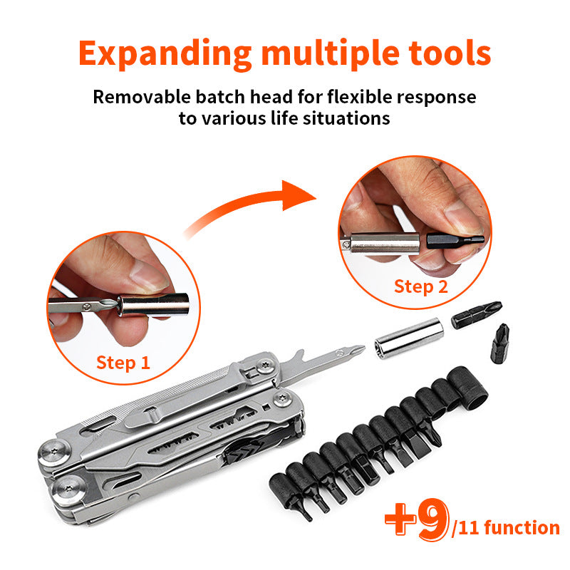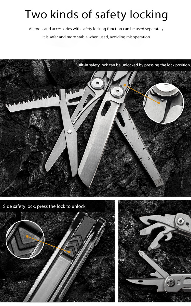Outdoor folding multi-purpose pliers are portable tools specifically designed for outdoor scenarios. Typically featuring a foldable/retractable structure (such as blades or cutting edges concealed within the handles), they are compact and easy to carry. Integrating multiple tool functions, they meet diverse needs for camping, mountaineering, hiking, and wilderness repairs.