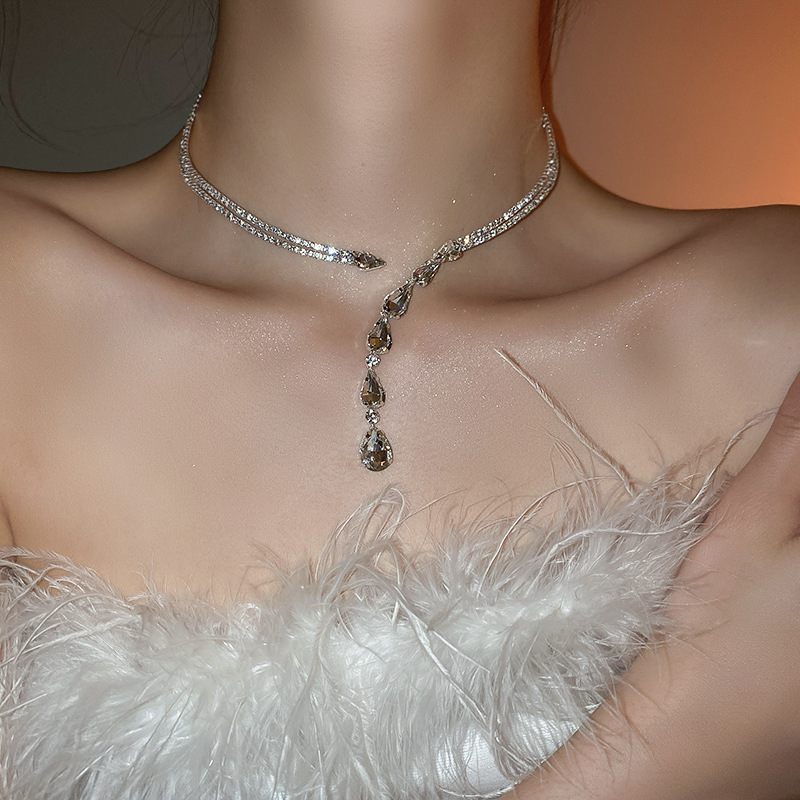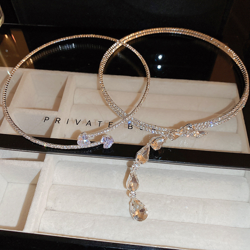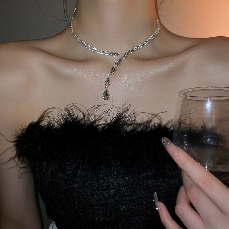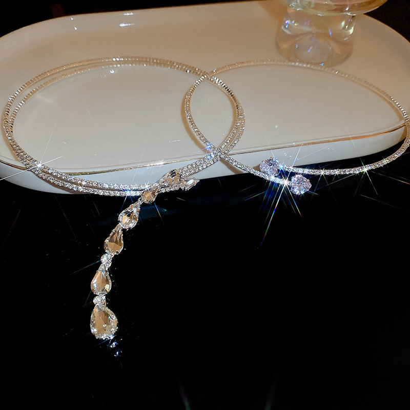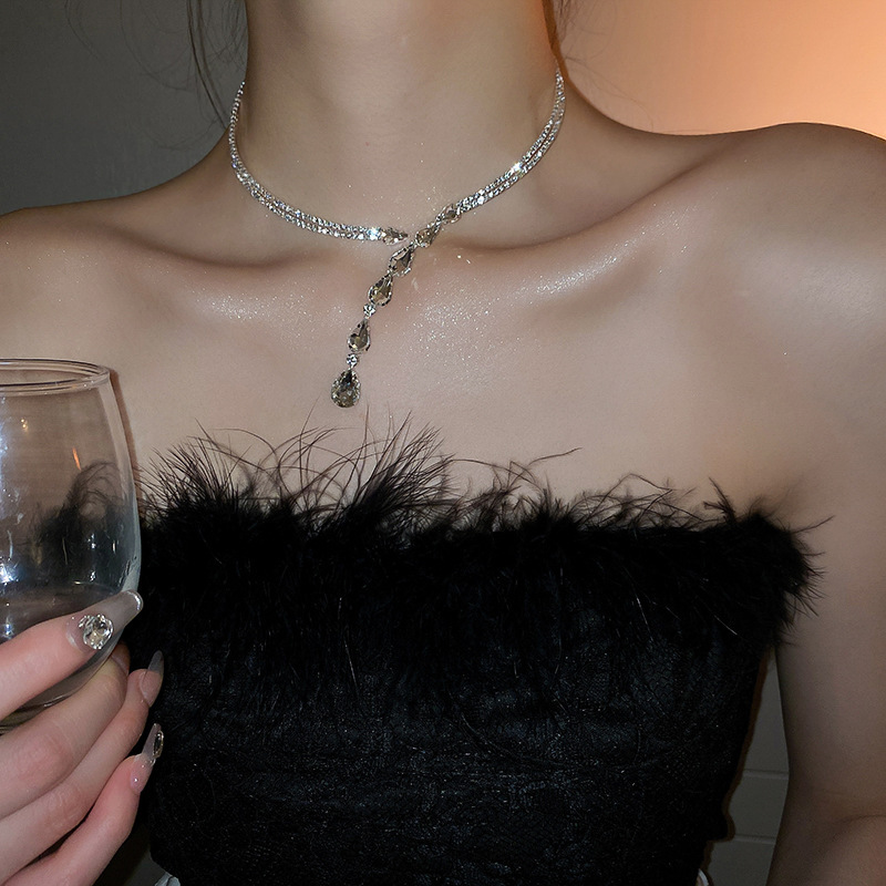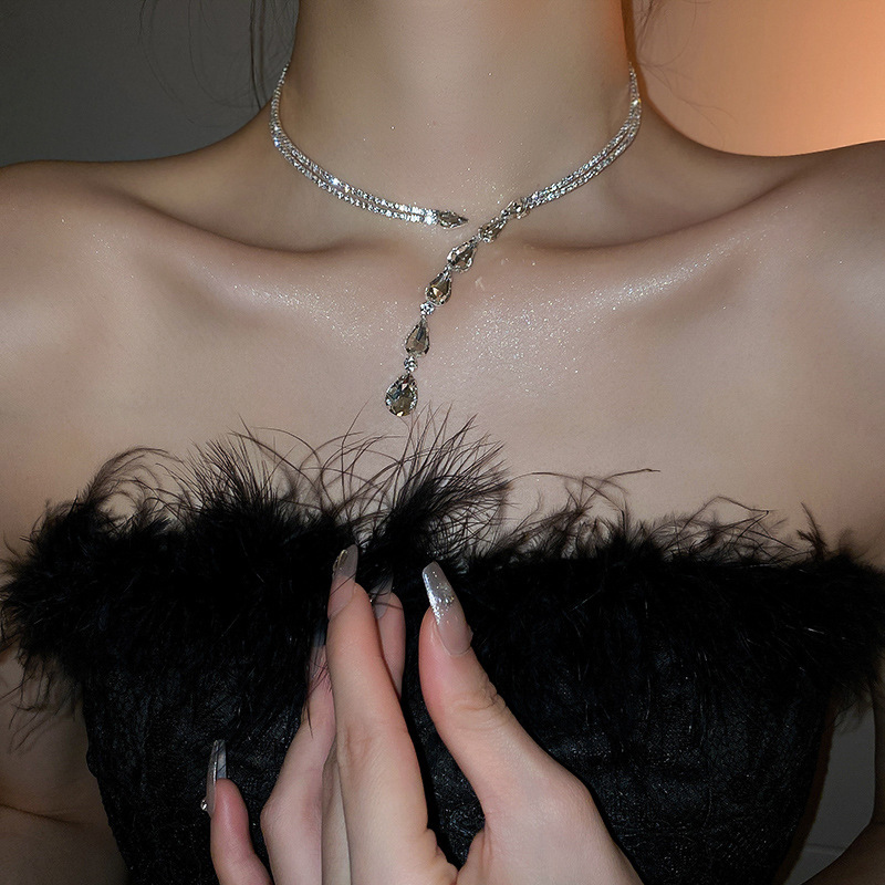 A204 Sweet Cool Double Layer Waterdrop Choker Necklace, Y2K Style Minimalist High-Grade Versatile Jewelry
